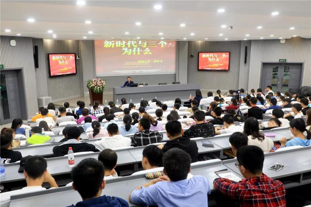 威廉希尔足球官网党委常委、党委宣传部部长唐珍名以《新时代与三个为什么》为题开讲第一课。唐珍名部长用全新视角观察,以材料学子浓厚的入党热情为切入点,解读了何为新时代,并结合新时代中国特色社会主义的历史方位、主要矛盾和建设内涵,深入浅出地阐述了“中国共产党为什么能”、“马克思主义为什么行”、“中国特色社会主义为什么好”。