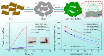 图3. 双交联网络功能化石墨烯/聚苯胺刚性水凝胶的制备及力学和电化学性能图